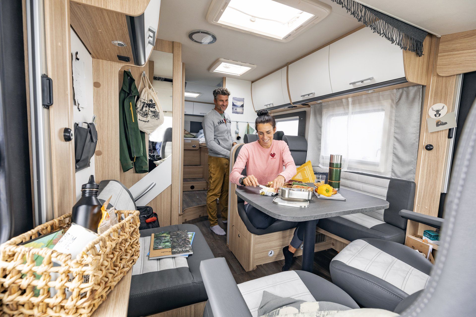 Der SUNLIGHT T68 ADVENTURE EDITION ist perfekt für Paare oder Familien mit einem oder zwei Kindern. Er hat ein Einzel- bzw. Doppelbett im Heck und ein vorderes Hub-Bett, das mehr Platz im Wohnbereich bietet. Die Küche besteht aus Leichtbaumöbeln mit Arbeitsplatte, Spüle mit 3-Flammen Kocher sowie großem Kühl-/Gefrierschrank.